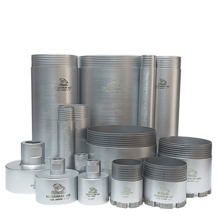 PRO 専業系列、以全新配方, 製造出来的刀頭更加鋒利耐用。 激光焊接使刀頭不容易脫落。 – 3”以下打孔機以低速鑽会影響鑽咀鋒利 – 5”以上含有鋼根的混凝土、打孔機以低速鑽孔為理想 – 螺紋位置定要塗上油脂 尺寸 : 刀頭: 1″ | 1-1/4″ | 1-1/2″ | 2″ | 2-1/2″ | 3″ | 3-1/2″ | 4″ | 4-1/2″ | 5″ | 6″ | 7″ | 8″ | 9″ | 10″ | 12″ | 14″ | 訂造尺寸 中通: 1″ | 1-1/4″ | 1-1/2″ | 2″ | 2-1/2″ | 3″ | 3-1/2″ | 4″ | 4-1/2″ | 5″ | 6″ | 7″ | 8″ | 9″ | 10″ | 12″ | 14″ | 訂造尺寸 接頭: 1″ | 1-1/4″ | 1-1/2″ | 2″ | 2-1/2″ | 3″ | 3-1/2″ | 4″ | 4-1/2″ | 5″ | 6″ | 7″ | 8″ | 9″ | 10″ | 12″ | 14″ | 訂造尺寸 短通: 1″ | 1-1/4″ | 1-1/2″ | 2″ | 2-1/2″ | 3″ | 訂造尺寸 油壓鑽用接頭: 1″ | 1-1/4″ | 1-1/2″ | 2″ | 2-1/2″ | 3″ | 訂造尺寸
